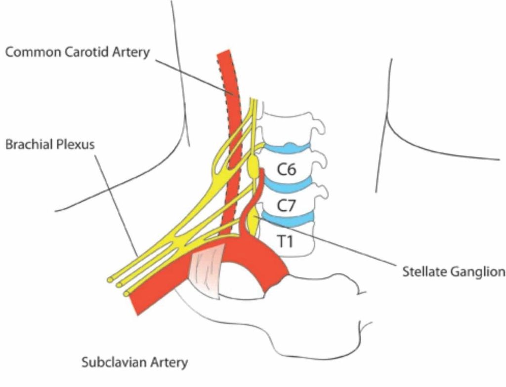 Six weeks was a long healing process on the machine. I fought an infection at the surgical site, taking numerous medications with high doses of antibiotics. In a zombie state, I sat in a zero gravity chair my girlfriend lent to me to be comfortable while the machine did its work by my side. I slept on the trundle bed in the guest room. The noise of the machine kept Jeff from sleeping. He needed his sleep as he carried the load of the whole household, his demanding job, and caring for me. He would drive back and forth from work a couple of times a day during his busiest time of year. On four occasions, he was stopped for speeding. He would apologize to the officer as he explained our situation. At the fourth stop, he received a ticket. He was going 90 mph in a 55 mph zone. He worked 30 miles away, 25 miles was open farm country with no stoplights. The biggest obstacle was encountering deer. It was a 45-minute drive one way. My friends helped drive Zack to his afterschool activities. My daughter returned home from college to recover from a broken foot. We concurred and survived. I have no idea how. I was finally relieved of the machine. The elbow was healing great. I started physical therapy. It progressively aggravated and caused enormous pain to my shoulder and my arm. I tried to push through it, the no pain no gain theory. At one of the physical therapy sessions, my arm went completely limp. It turned several shades of blue and purple. The muscle spasms were so bad. It jerked my head and neck. The hand surgeon in the building witnessed this reaction. He made his assessment and called my doctor. Both agreed I should try injections called stellate ganglion blocks. This procedure injects pain medication directly into the nerves of your spine. The idea was to calm the nerves going down my arm to help the healing of my brachial plexus nerve injury.